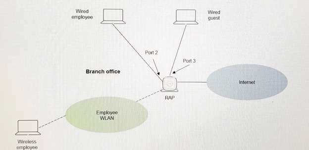 guest access and Port2 is used for wired employee access. When employees connect to Port2, they