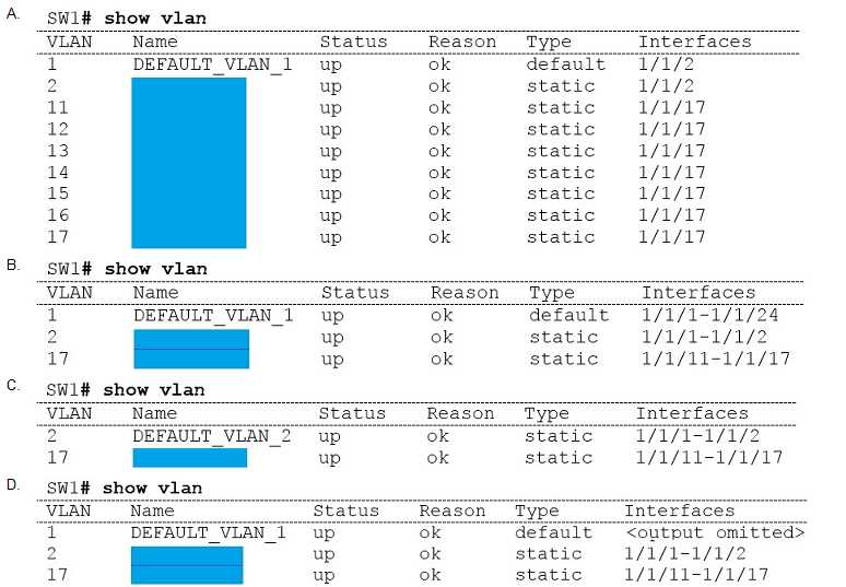 SW1(config-if-<1/1/11-1/1/17)# vlan access 17