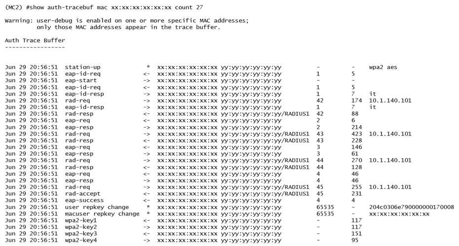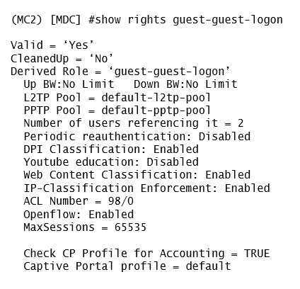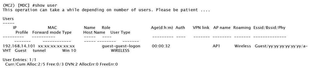 administrator finds the user in the Mobility Master (MM) and reviews the output shown in the