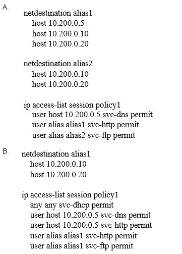 This policy must allow users to reach Web, FTP, and DNS services, as shown in the exhibit. Other