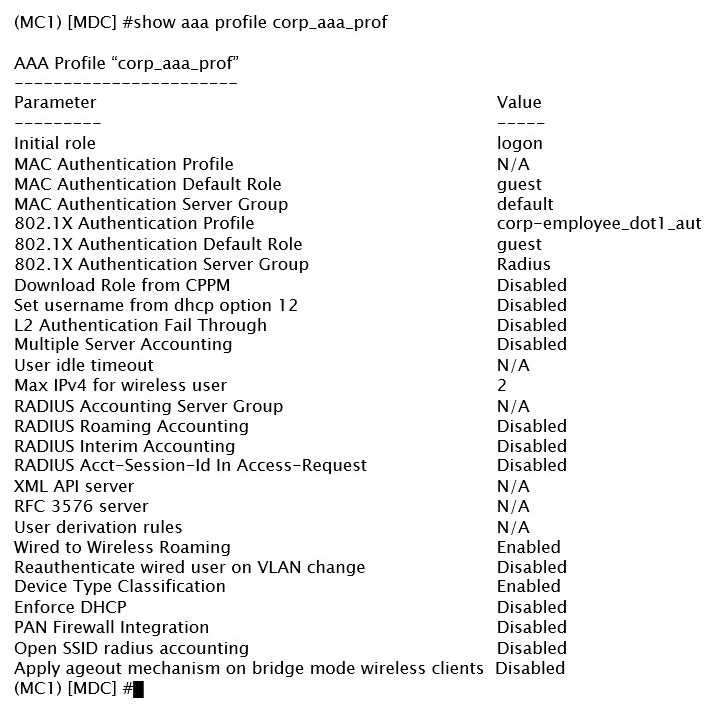A network administrator has created AAA profile for the corporate VAP. In addition to the regular