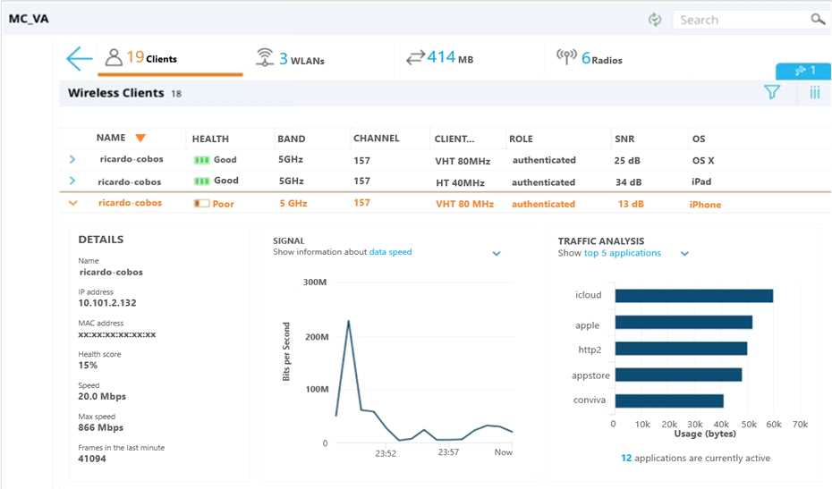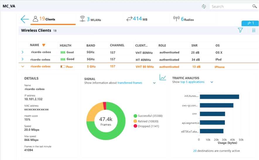 problem with the WLAN. The user’s phone supports 802.11ac in the 5 GHz band. The network