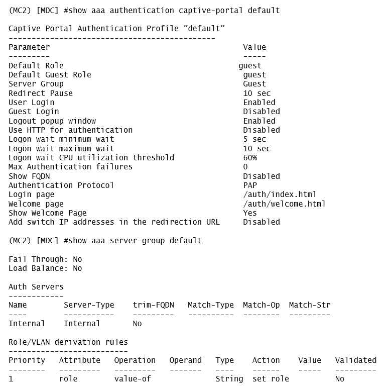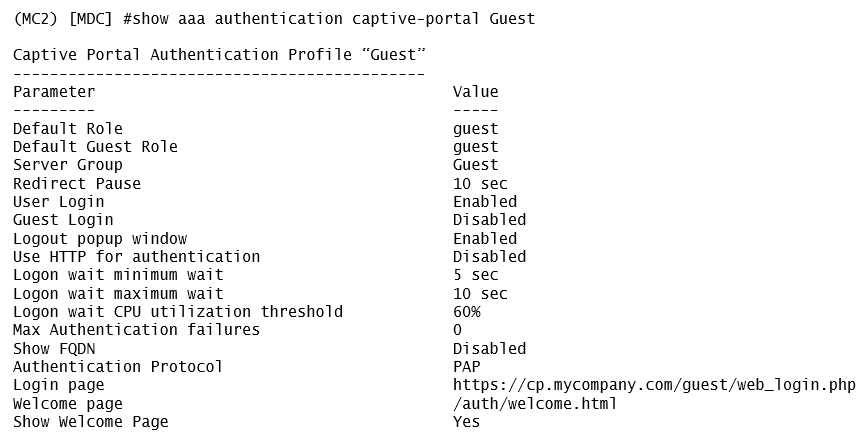 A captive portal-based solution is deployed in a Mobility Master (MM) - Mobility Controller (MC)