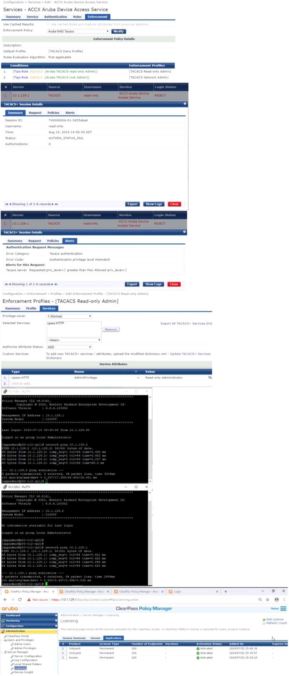 was able to login to the console of the ClearPass server with the same CLI password used during the
