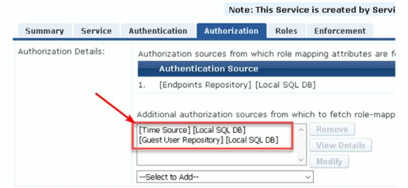 When creating a new ClearPass Service, the [Time Source] has been added as an authorization