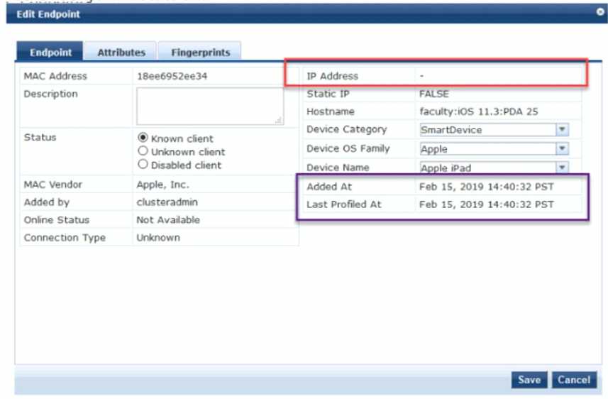 ClearPass receives fingerprinting profile data for a client device that is based on MAC OUl. NMAP.