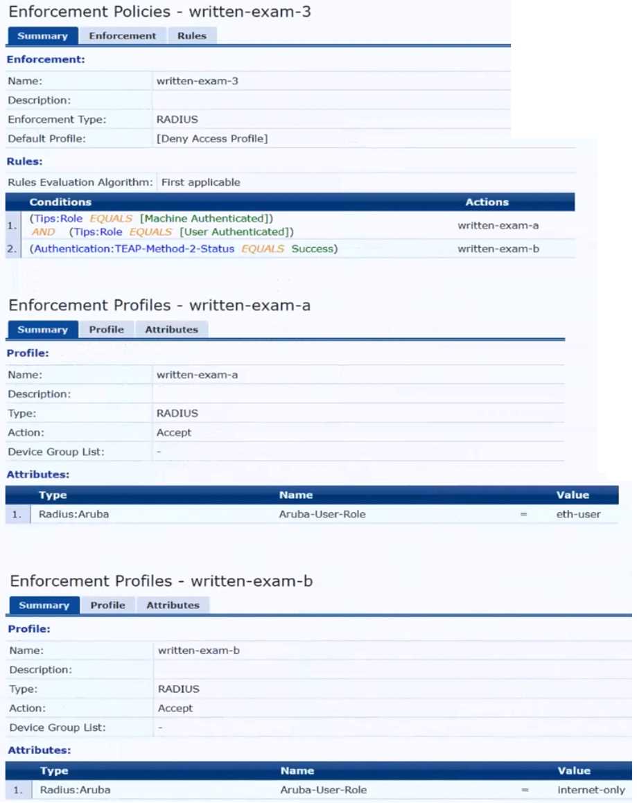 The customer has several requirements for authentication. The clients should only pass EAP-TLS