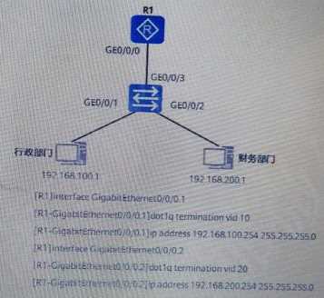 ARP proxy is not enabled on the sub-interface of R1,The administrative department and the financial