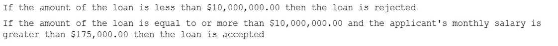 Here are some example rules harvested during rule discovery for the new automated loan approval