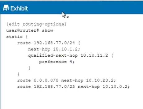 Referring to the exhibit, if the router forwards traffic destined for 192.168.77.29, which next hop will