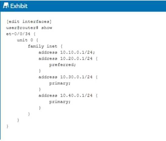 Referring to the exhibit, what will be the source address for packets egressing et-0/0/34.07