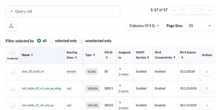 listed VXLANs, the user needs to select Columns, then select IPv6 Subnet. This will show the IPv6