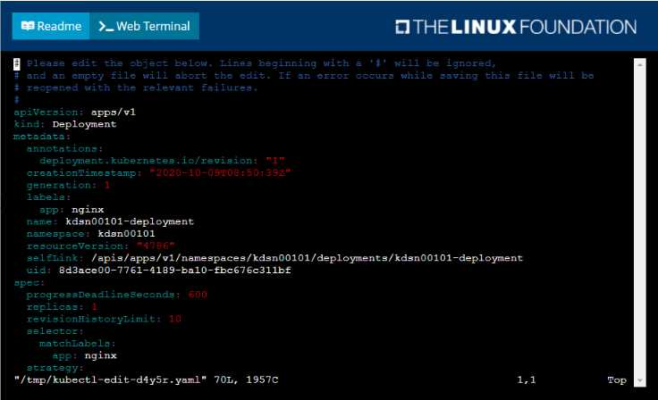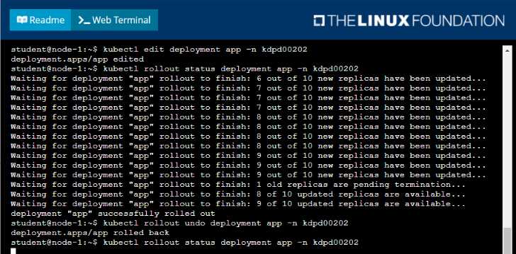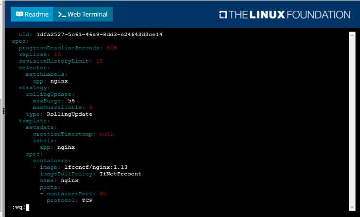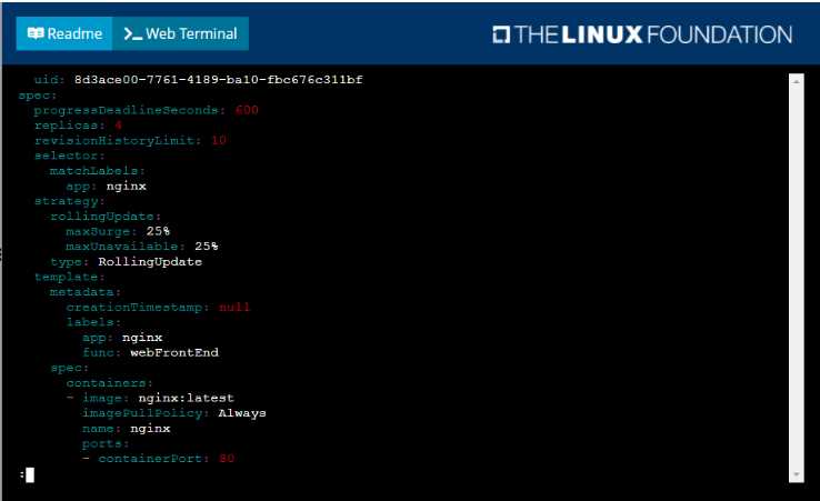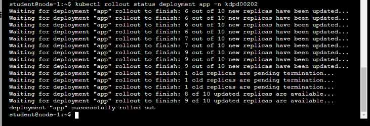 • Perform a rolling update of the web1 deployment, changing the Ifccncf/ngmx image version to