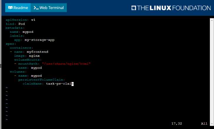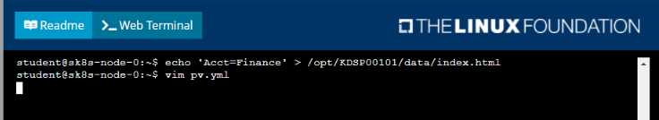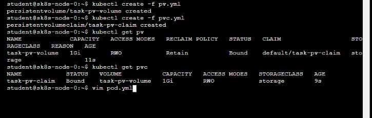 • Create a pod that uses the PersistentVolmeClaim as a volume with a label app: my-storage-app
