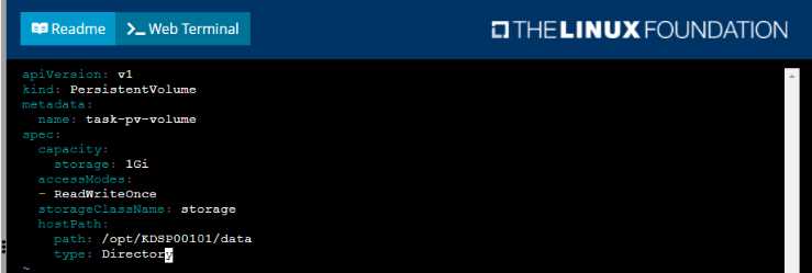 that the volume is at /opt/KDSP00101/data on the cluster's node. The configuration should specify