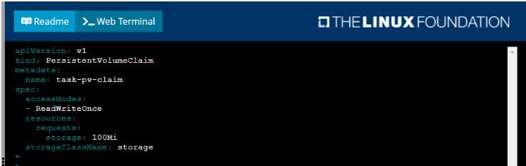 • Create a PefsissentVolumeClaim named task-pv-claim that requests a volume of at least 100Mi