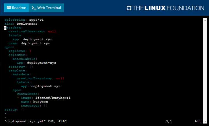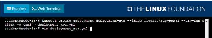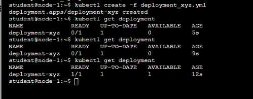 • Create a deployment named deployment-xyz in the default namespace, that: