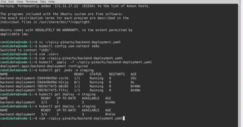 A Deployment named backend-deployment in namespace staging runs a web application on port