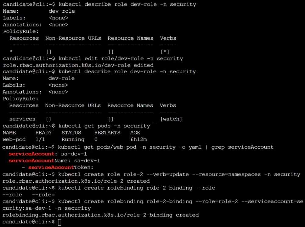 Create a new RoleBinding named dev-test-role-binding, which binds the newly created Role to the