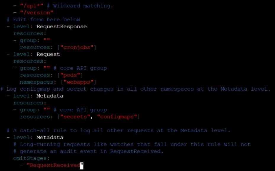 Enable audit logs in the cluster, To Do so, enable the log backend, and ensure that