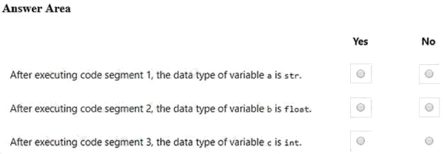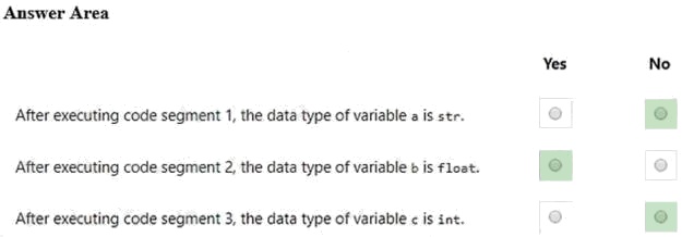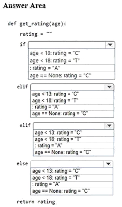 How should you complete the code? To answer, select the appropriate code segments in the answer area.