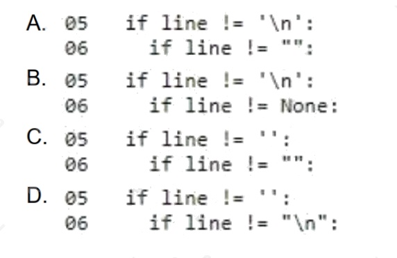 Which code segments should you use for line 01 and line 04? Each correct answer presents part of the solution? (Choose