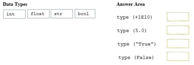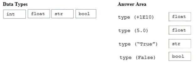 To answer, drag the appropriate data type to the correct type operation. Each data type may be used once, more than once,