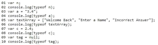 You need to evaluate the following code segment. Line numbers are included for reference only.