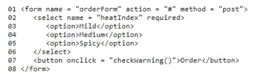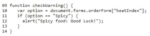 You are creating a web page that allows customers to choose how hot their spice is. If they choose spicy, a warning should