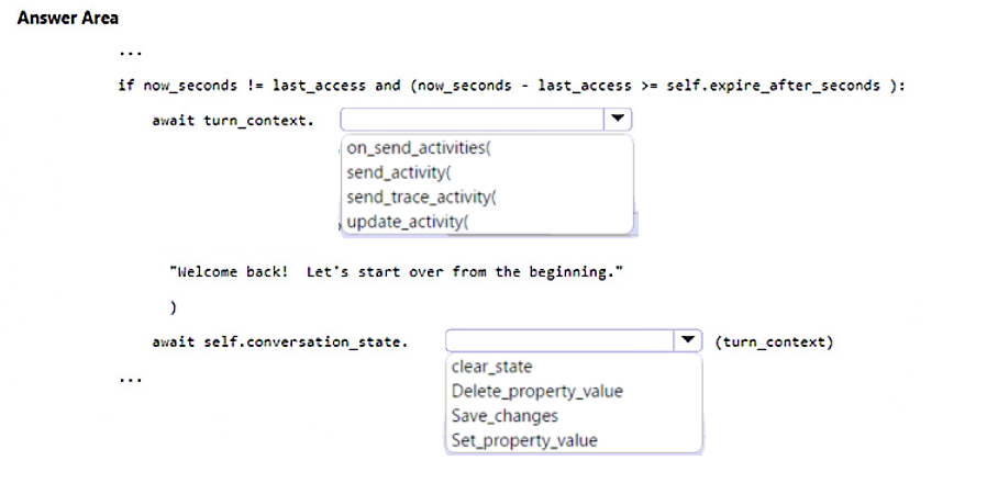 How should you complete the code? To answer, select the appropriate options in the answer area.