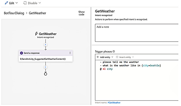You have a bot that was built by using the Microsoft Bot Framework composer as shown in the following exhibit.