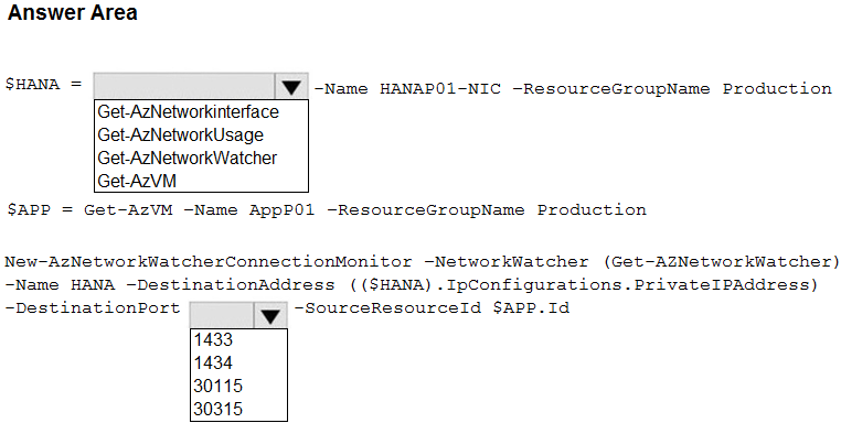 How should you complete the script? To answer, select the appropriate options in the answer area.