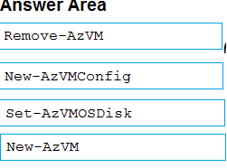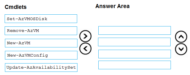 Which four PowerShell cmdlets should you run in sequence? To answer, move the appropriate actions from the list of actions to the answer area and arrange them in the correct order.