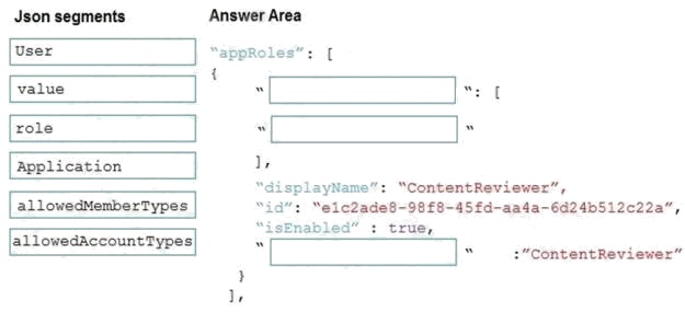 Box 3: value value specifies the value which will be included in the roles claim in authentication and access tokens.