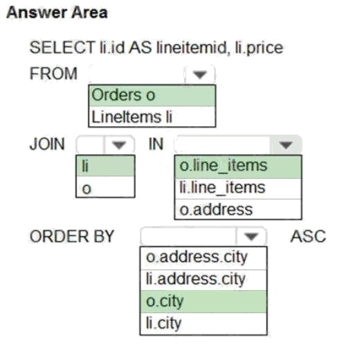 You need to retrieve all order line items from Order.json and sort the data alphabetically by the city.