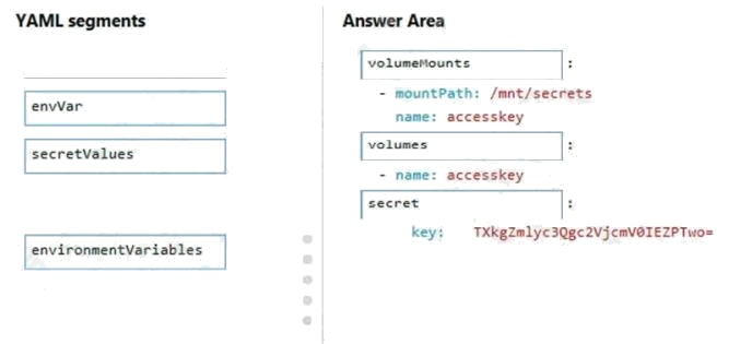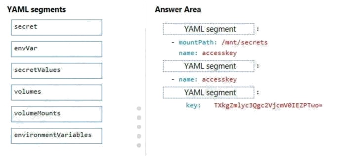 How should you complete the YAML markup? To answer, drag the appropriate YAML segments to the correct locations.
