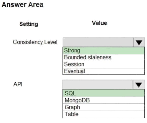 Which settings should you use? To answer, select the appropriate options in the answer area.