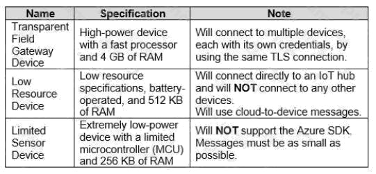 You plan to attach three types of IoT devices as shown in the following table.