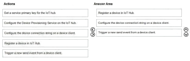 You create a new IoT device named device1 on iothub1. Device1 has a primary key of Uihuih76hbHb.