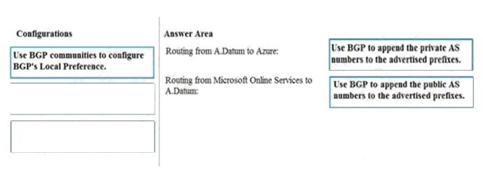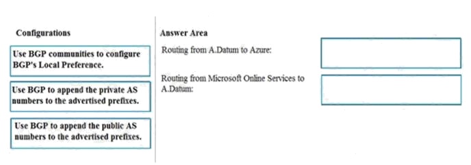 How should you configure Azure ExpressRoute routing? To answer, drag the appropriate configurations to the correct