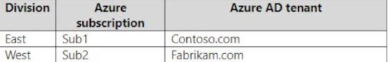 Sub1 contains an Azure App Service web app named App1. App1 uses Azure AD for single-tenant user authentication. Users from contoso.com can authenticate to App1.