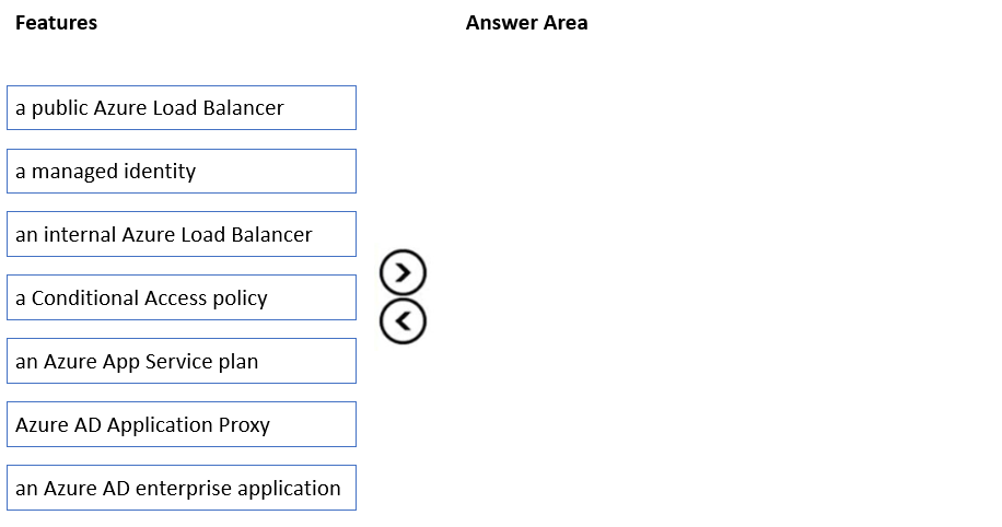 Which three features should you recommend be deployed and configured in sequence? To answer, move the appropriate features from the list of features to the answer area and arrange them in the correct order.