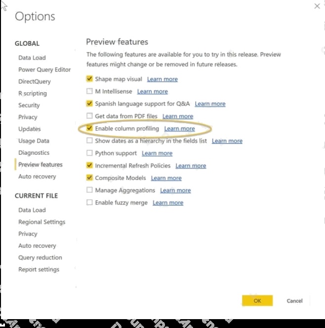Data Profiling, Quality & Distribution in Power BI / Power Query features