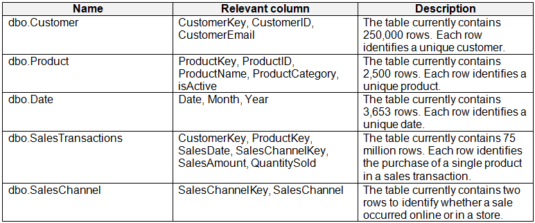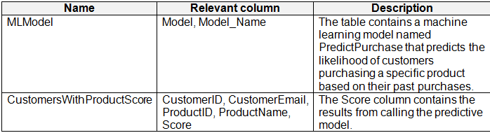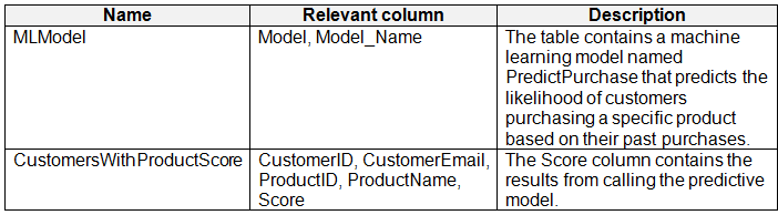 HOTSPOT You manage a dataset that contains the two data sources as shown in the following table.