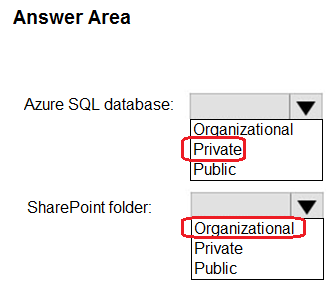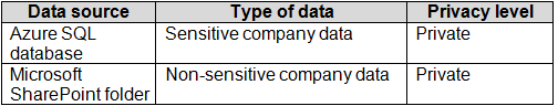 Which privacy level should you select for each data source? To answer, select the appropriate options in the answer area.