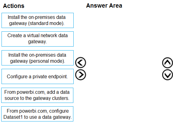DRAG DROP You have a shared dataset in Power BI named Dataset1.