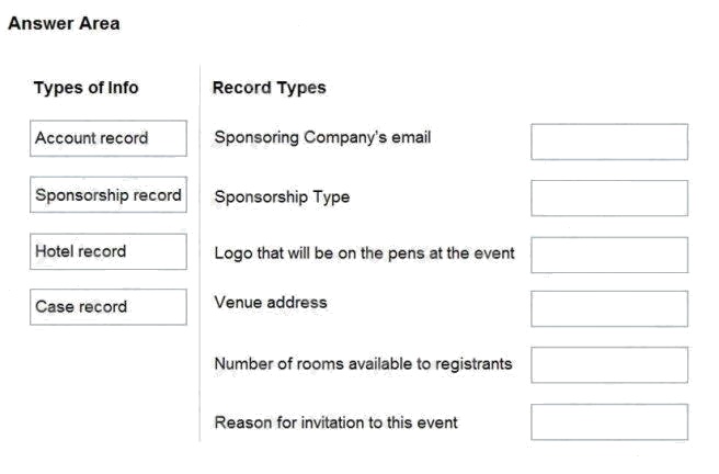 To answer, drag the Type of Info to the appropriate Record Type. Each item may be used once, more than once, or not at