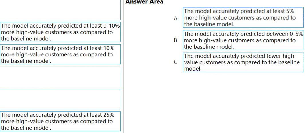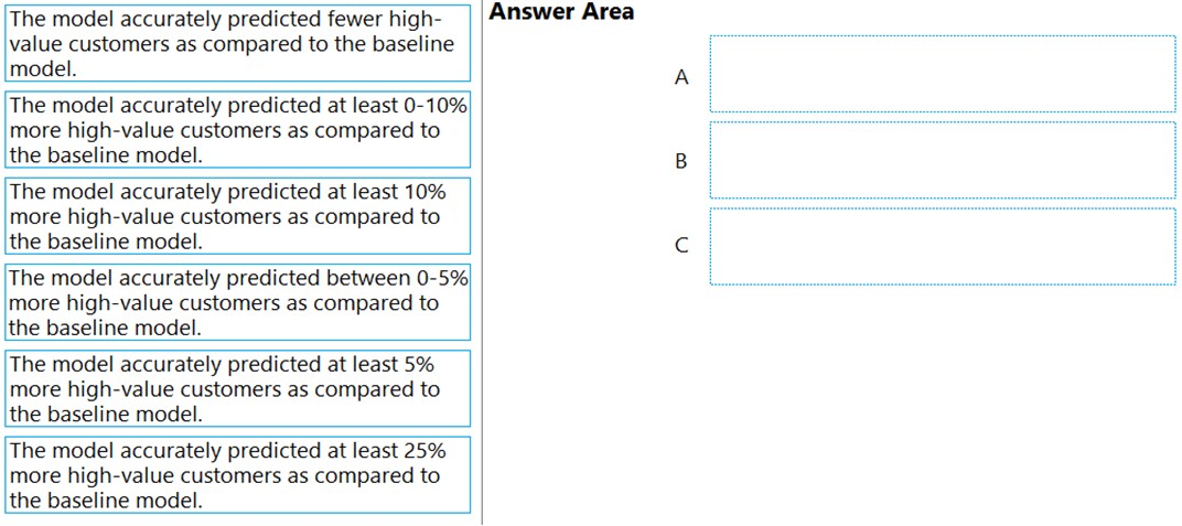 DRAG DROP You are a Customer Data Platform Specialist. The marketing manager at your company wants to understand the training model performance for a customer lifetime value (CLV) model you configured.