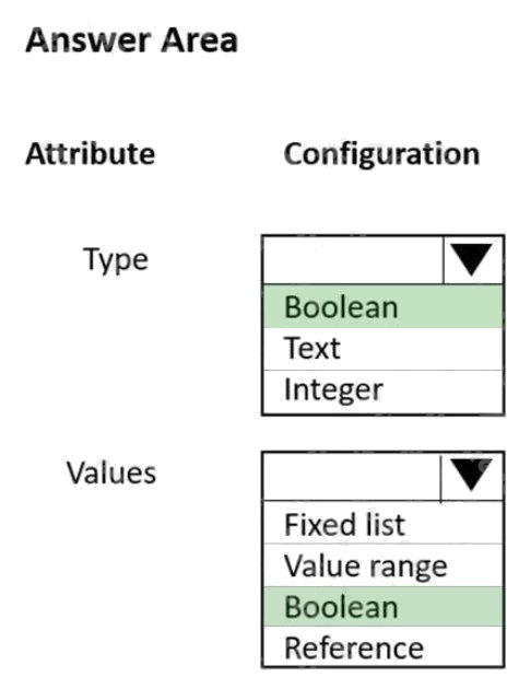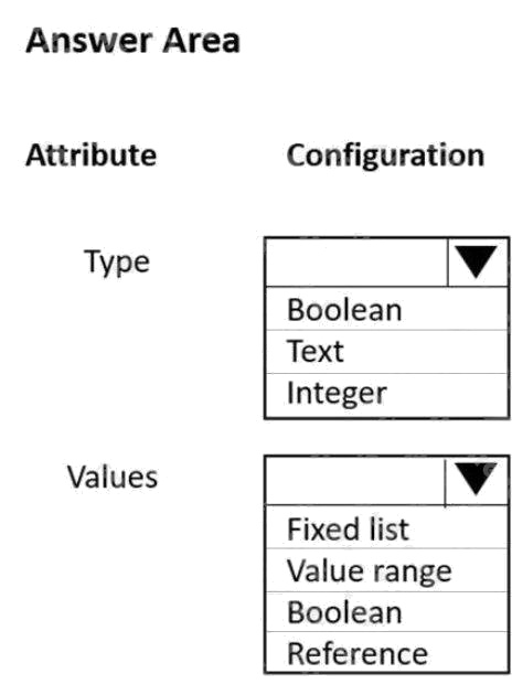 Which configuration should you use for each attribute. To answer, select the appropriate option in the answer area.