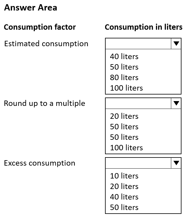 What is the consumption? To answer, select the appropriate options in the answer area.